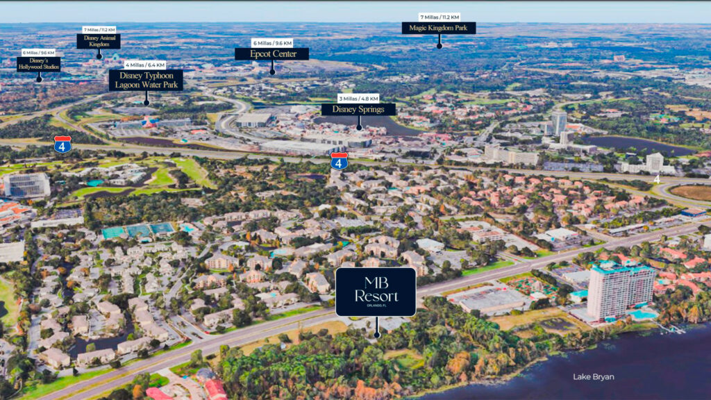MB Resort se encuentra a tan solo cinco minutos de Disney Springs, rodeado de centros comerciales, atracciones y zonas turísticas de alto flujo. Esto garantiza una ocupación constante y un entorno seguro y familiar para los propietarios e inversionistas.